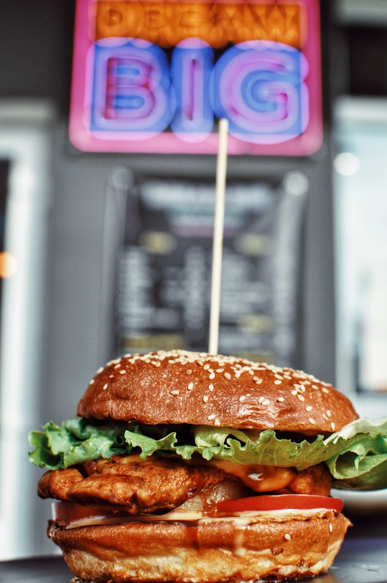 Dream Big specializes in crafting delectable burgers that are sure to satisfy your cravings. One of the standout items on their menu is the Classic Beef Burger, featuring a juicy beef patty paired with tangy pickles, fresh tomatoes, zesty red onions, crisp iceberg lettuce, and a generous layer of melted cheddar cheese. All this is brought together with their classic sauce, creating a flavor explosion that you won't want to miss. Each bite is a celebration of savory goodness, making it a must-try for burger enthusiasts.